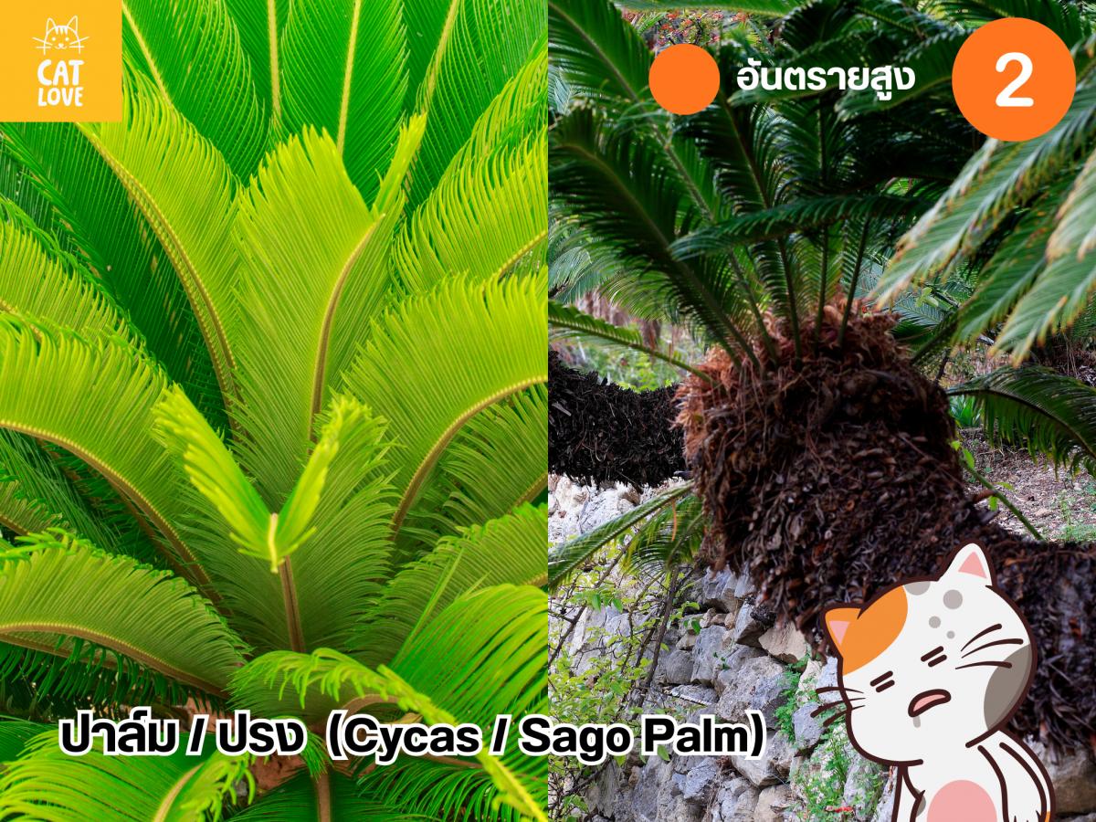 ไม้ประดับยอดฮิตที่ใช้ในการจัดสวนสไตล์โมเดิร์น อย่าง ปาล์มและปรง มีสารประกอบสำคัญที่ออกฤทธิ์ร้ายแรงอย่าง ไซคาซิน (Cycasin) อยู่ ซึ่งเป็นสารประกอบที่ออกฤทธิ์ร้ายแรงในสิ่งมีชีวิตหลายชนิดรวมไปถึงมนุษย์ สุนัข และแมว ไซคาซินสามารถออกฤทธิ์โดยตรงต่อเซลล์ตับเมื่อสิ่งมีชีวิตได้รับสารไซคาซินลงสู่ระบบทางเดินอาหารและลำไส้ ทำให้ร่างกายเกิดการดูดซับและออกฤทธิ์ทันทีต่อการทำงานของตับ และอาจนำไปสู่ภาวะตับล้มเหลวเฉียบพลันได้ในเวลาถัดไป นอกจากนี้ ในทั้งปาล์มและปรงยังมีสามารถพบ Beta-methylamino-L-alanine (BMAA) สารพิษที่ออกฤทธิ์โดยตรงต่อระบบประสาท ซึ่งจะทำให้เกิดอาการเดินเซ ตัวสั่น และชักเกร็งในแมวได้ โดยสารทั้งสองนี้ สามารถพบได้ในทุกส่วนของปาล์มและปรง แต่จะมีมากในผลหรือเมล็ด ดังนั้น ทาสที่เลี้ยงน้องแมวที่มีต้นปรงและปาล์มบริเวณบ้าน ซึ่งเป็นไม้ใหญ่ที่ทำการย้าย หรือถอนกำจัดได้ยาก ก็อาจจะต้องดูแลความปลอดภัยของน้องแมวในบ้านอย่างใกล้ชิด อย่าให้ไปกัดแทะส่วนต่าง ๆ ของปาล์มและปรงได้นะ !
