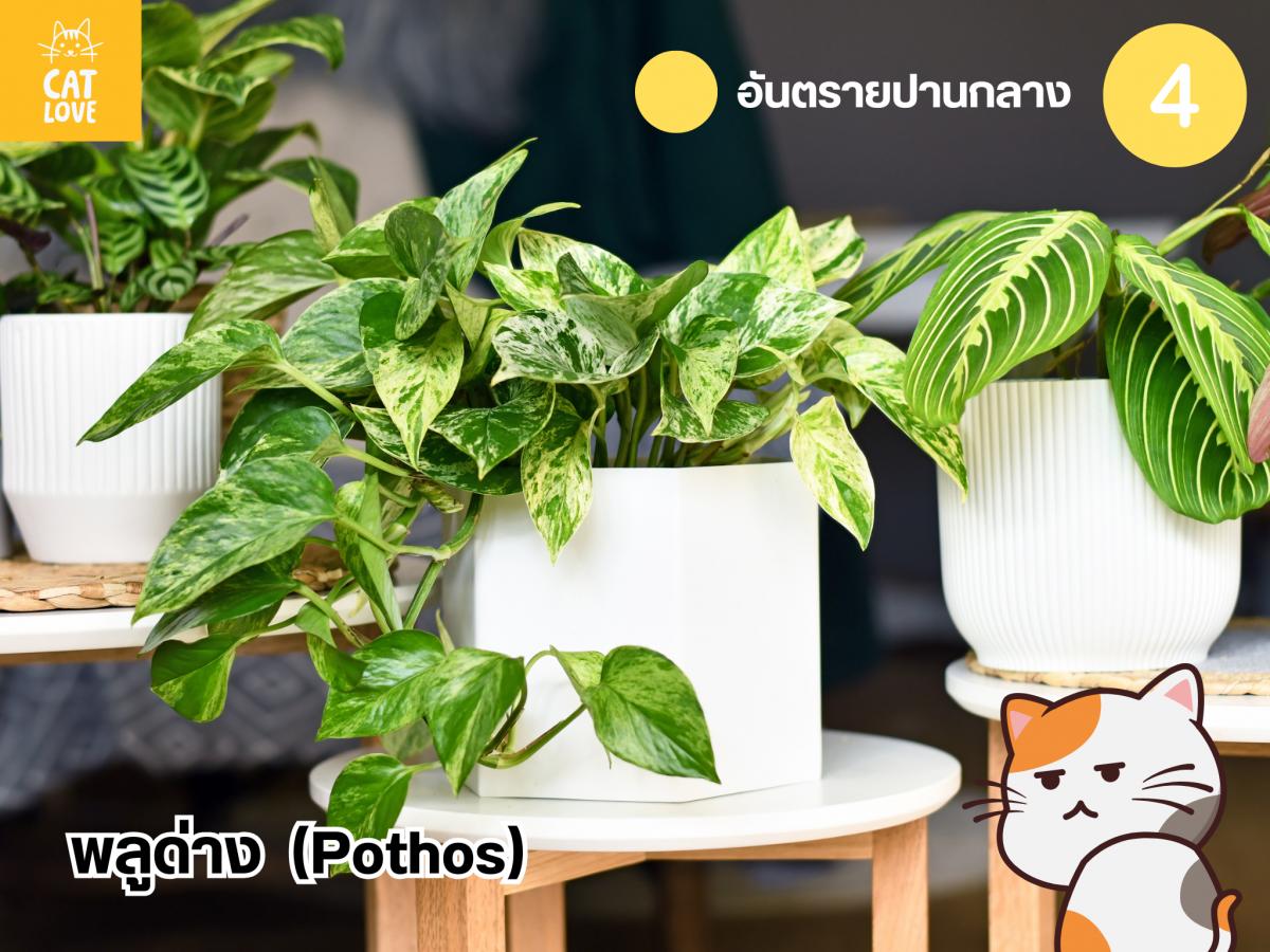 เนื่องจากเป็นพืชตระกูลเดียวกับสาวน้อยประแป้ง ผลกระทบหลักที่เกิดขึ้นหากแมวเผลอไปเคี้ยวลำต้นหรือใบของพลูด่างเข้า นั่นคือ อาการระคายเคืองที่เกิดจากโครงสร้าง แคลเซียมออกซาเลต (Calcium Oxalate) แต่เพราะขนาดลำตันของพลูด่าง เมื่อเทียบกับสาวน้อยประแป้ง มีขนาดต่างกันมาก โดยพลูด่างจะมีขนาดเล็กกว่า ทำให้สามารถพบโครงสร้างของแคลเซียมออกซาเลต ได้น้อย แต่ยังไงโครงสร้างเข็มขนาดเล็กนี้ก็ยังสามารถสร้างความเจ็บปวดและความรำคาญให้น้องแมวอยู่ ดังนั้น ทางที่ดีควรปลูกประดับพลูด่างไว้ให้ห่างจากน้องแมวในบ้านจะดีกว่า