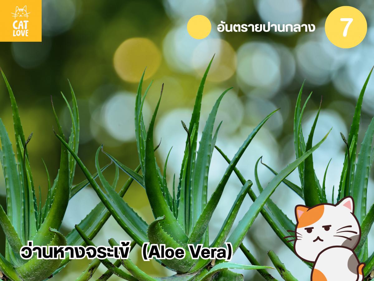 หนึ่งในพืชประดับที่เรานำมาใช้ประโยชน์ได้หลายอย่าง ตั้งแต่ยาไปจนถึงขนมและอาหาร สารสำคัญที่ทำให้ว่านหางจระเข้เป็นอันตรายต่อแมว คือ ซาโปนิน (Saponins) และ แอนทราควิโนน (Anthraquinones) ที่พบได้บนเปลือกใบสีเขียวที่กักเก็บวุ้นสีขาวของว่านหางจระเข้เอาไว้ (ในวุ้นของใบ ไม่พบสารเหล่านี้นะ) สารทั้งสองตัวนี้ปกติแล้วจะออกฤทธิ์เป็นยาระบาย ซึ่งหากแมวได้รับไปในปริมาณหนึ่ง อาจทำให้แมวมีอาการท้องร่วงได้ โดยจะแสดงอาการเหมือนกับมนุษย์เราท้องร่วง คือ ถ่ายบ่อย อ่อนเพลีย ขาดน้ำ และอาเจียน มันอาจจะฟังดูทั่วไป แต่ก็ถือเป็นอาการที่น่าเป็นห่วงถ้าเกิดกับน้องแมวของเรา ดังนั้น อย่าให้แมวได้กัด หรือ แทะ ใบของว่านหางจระเข้จะดีกว่า