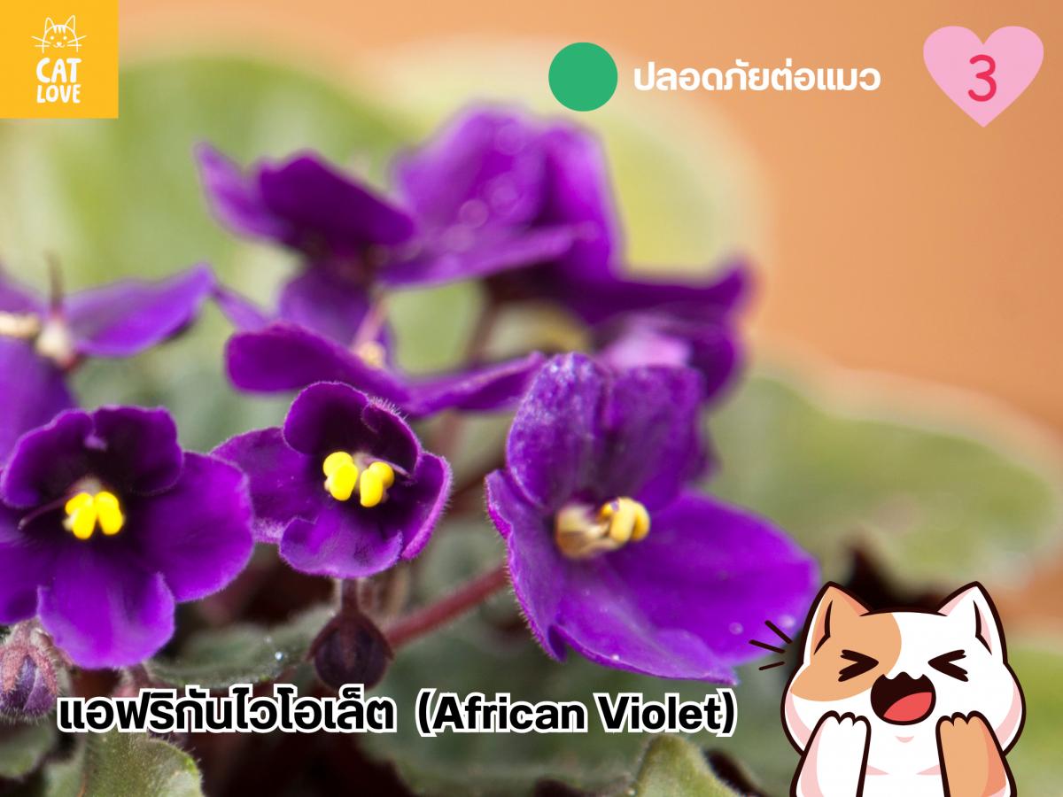 แม้จะปกคลุมไปด้วยขนแหลม แต่ขนเหล่านั้นเป็นขนนุ่ม และไม่ได้สร้างมาจากองค์ประกอบของแคลเซียมออกซาเลตแต่อย่างใด ทำให้แมวสามารถกัดแทะส่วนต่าง ๆ ของแอฟริกันไวโอเล็ตได้สบาย นอกจากนี้ แอฟริกันไวโอเล็ตยังเป็นพืชดอกประดับขนาดเล็ก จึงเหมาะกับการนำไปตกแต่งบ้านได้ในหลาย ๆ มุม ทำให้ความครีเอทีฟของทาสไม่มีที่สิ้นสุด และบอกเลย สีม่วงของแอฟริกันไวโอเล็ตมันได้ใจมาก ! รับรองว่าจะเป็นหนึ่งในไม้ดอกที่เข้ามาเติมสีสันให้กับบ้านของคุณได้อย่างดีแน่นอน