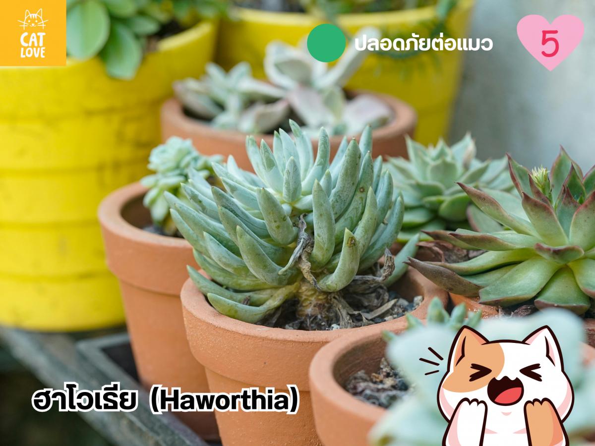 แม้จะเป็นพืชอวบน้ำเช่นเดียวกับว่านหางจระเข้ แต่รับรองได้เลยว่าปราศจากสารที่ทำให้ท้องเสียอย่าง ซาโปนิน (Saponins) และ แอนทราควิโนน (Anthraquinones) อย่างแน่นอน ทำให้ฮาโวเธียเป็นอีกตัวเลือกที่นำมาปลูกแทนว่านหางจระเข้ได้ (ในแง่ของความสวยงาม และประดับบ้านเท่านั้นนะ) และใบที่อวบน้ำของฮาโวเธียไม่ได้มีหนามแหลมคมเหมือนว่านหางจระเข้ การกัดแทะของน้องแมวจึงปลอดภัยไร้กังวล !