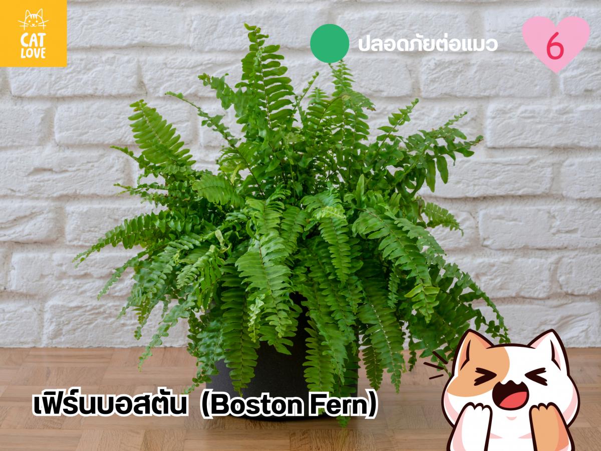 เรียกว่าเป็นหนึ่งในท็อปชอยส์ของพืชประดับสวนอย่างเฟิร์นบอสตัน ที่เรียกได้ว่าบ้านสวนสไตล์โมเดิร์นไม่มีไม่ได้ ! เฟิร์นบอสตัน จัดเป็นพืชในกลุ่มเฟิร์นแท้ (True Ferns) ซึ่งส่วนใหญ่ไม่มีสารอันตรายใด ๆ ที่ไม่ปลอดภัยต่อแมว หรือมีโครงสร้างต้นที่ประกอบด้วยแคลเซียมออกซาเลต จึงทำให้ปลอดภัยหากแมวเผลอกัดแทะเข้าไป นอกจากนี้บอสตันเฟิร์นยังมีคุณสมบัติในการฟอกอากาศ สามารถดูดซับสารก่อมะเร็งในอากาศหลายตัวได้ การปลูกเฟิร์นบอสตันในบ้านจึงเป็นผลดีทั้งต่อทาสแมวและแมวในบ้าน ที่จะได้มีบรรยากาศรอบบ้านที่สวยงามโมเดิร์น และอากาศที่บริสุทธิ์สำหรับทุกคนในบ้านมากขึ้น